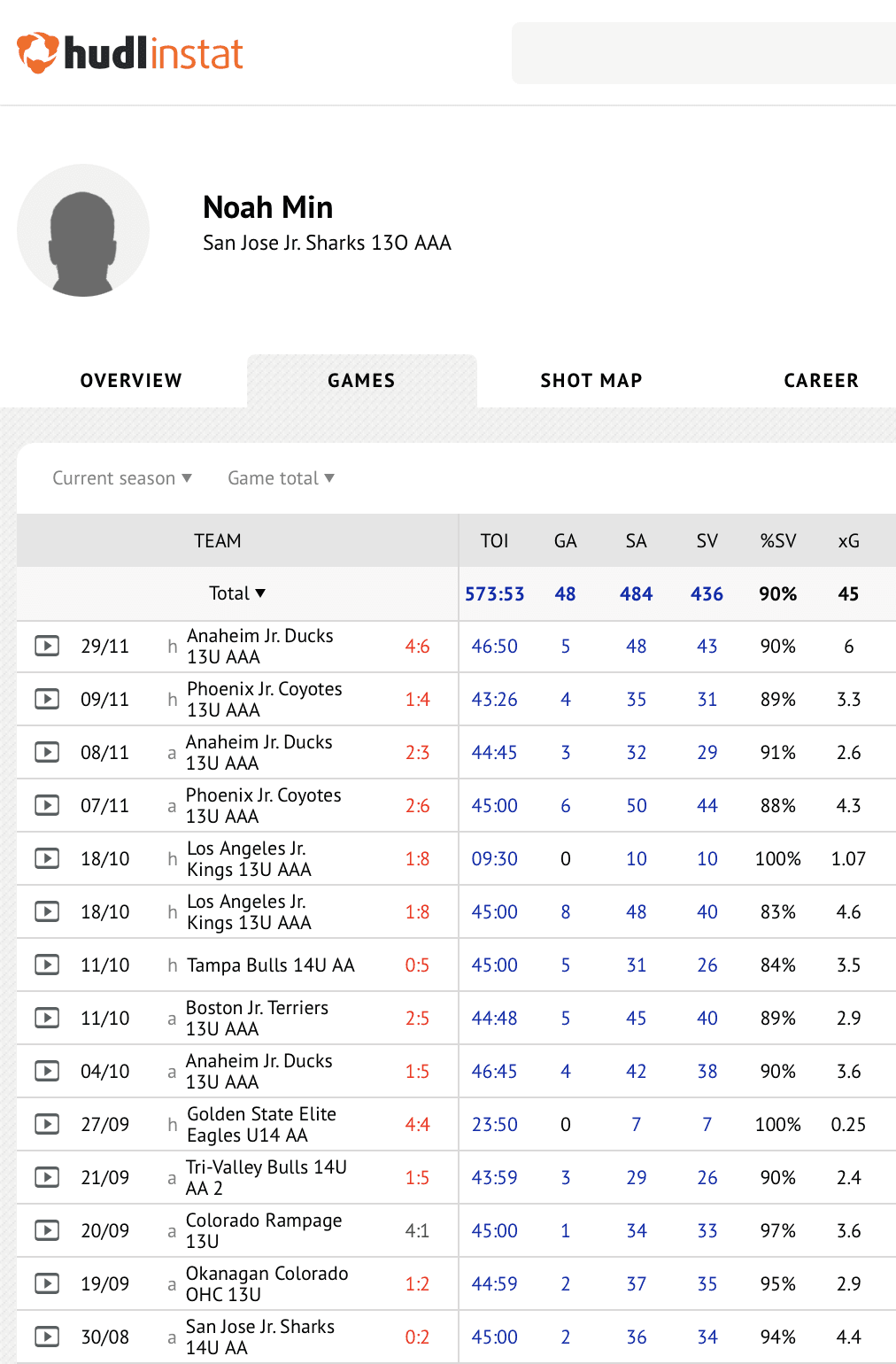 📊 .875 save % for the season (265 saves / 303 shots in 13 games)